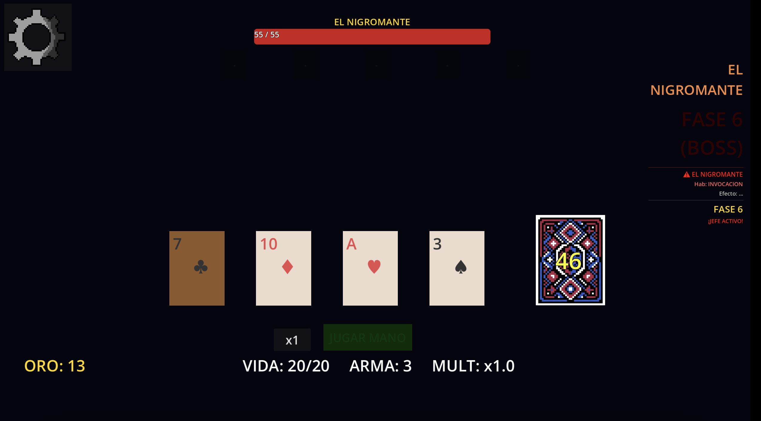 - Transmutación Más Inteligente: Ahora el juego te dice exactamente qué pasó (ej: "Mejora: +2 Valor"). También arreglé un problema de balance donde las cartas enemigas (Tréboles y Picas) recibÃan mejoras. Ahora, reciben correctamente Debuffs (como perder valor o ser purgadas). ¡Tomen eso, enemigos! 😈