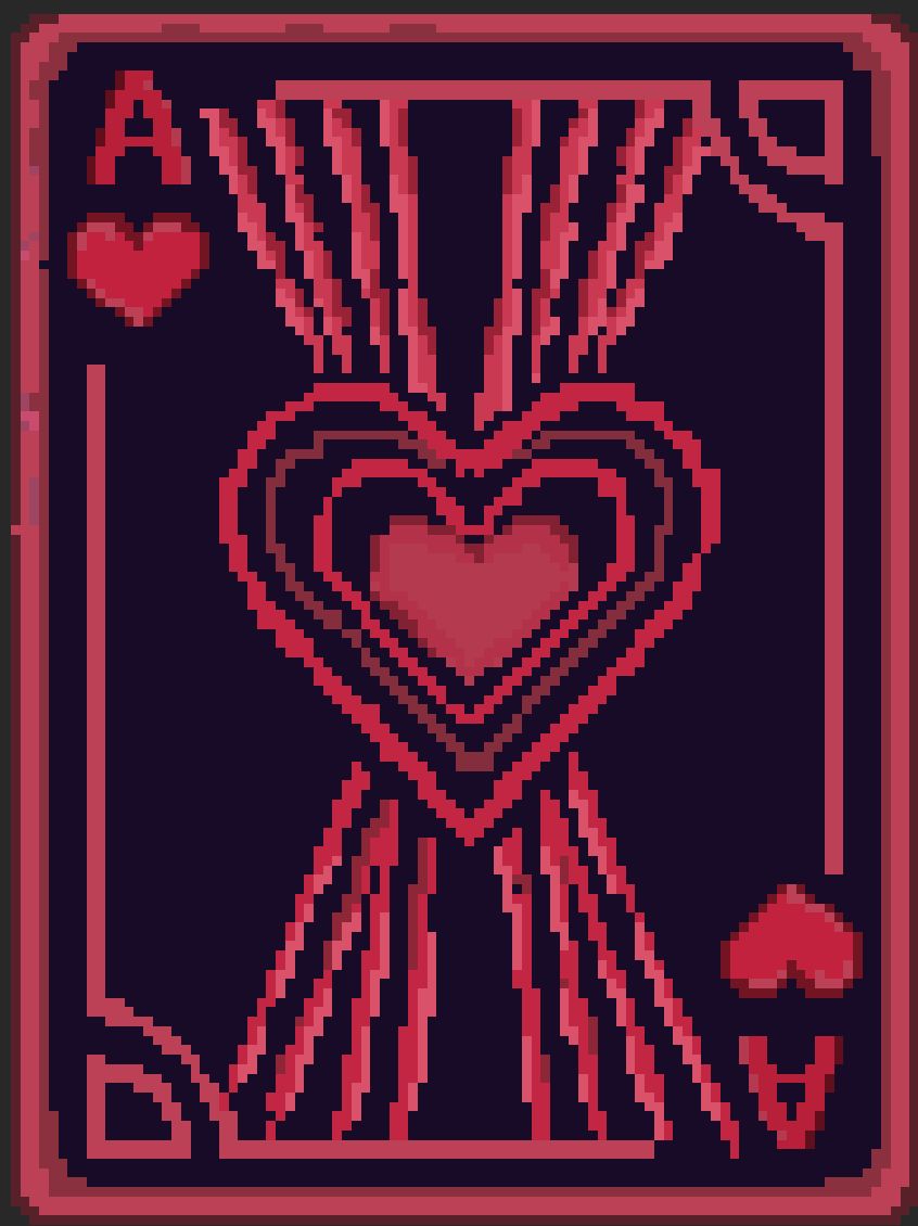 Y lo que más me emociona: ¡las cartas! Estoy trabajando en un estilo pixel art art-deco simplificado. Estoy especialmente orgulloso de cómo quedó el As de Corazones.