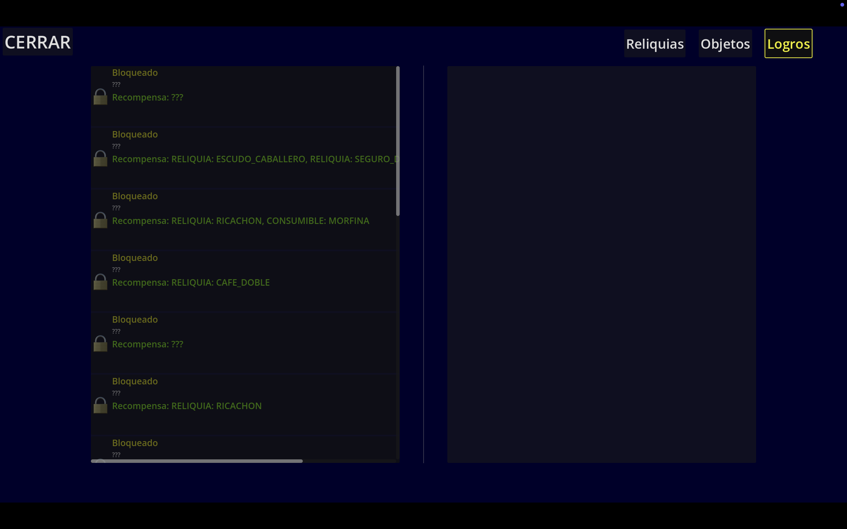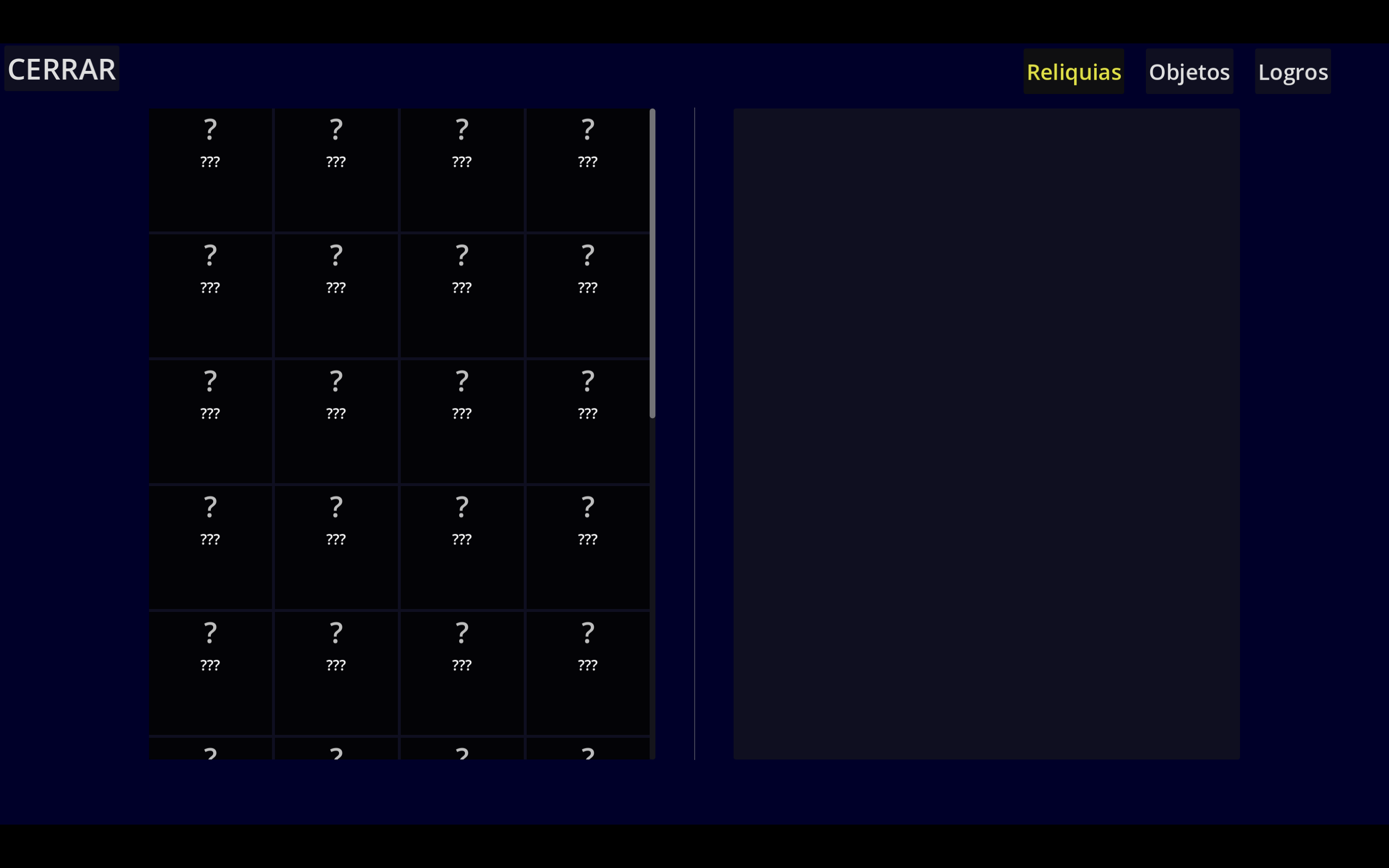 - Galería de Coleccionables: Un nuevo menú estilo "Libro" donde puedes ver todas las Reliquias y Objetos que has descubierto.